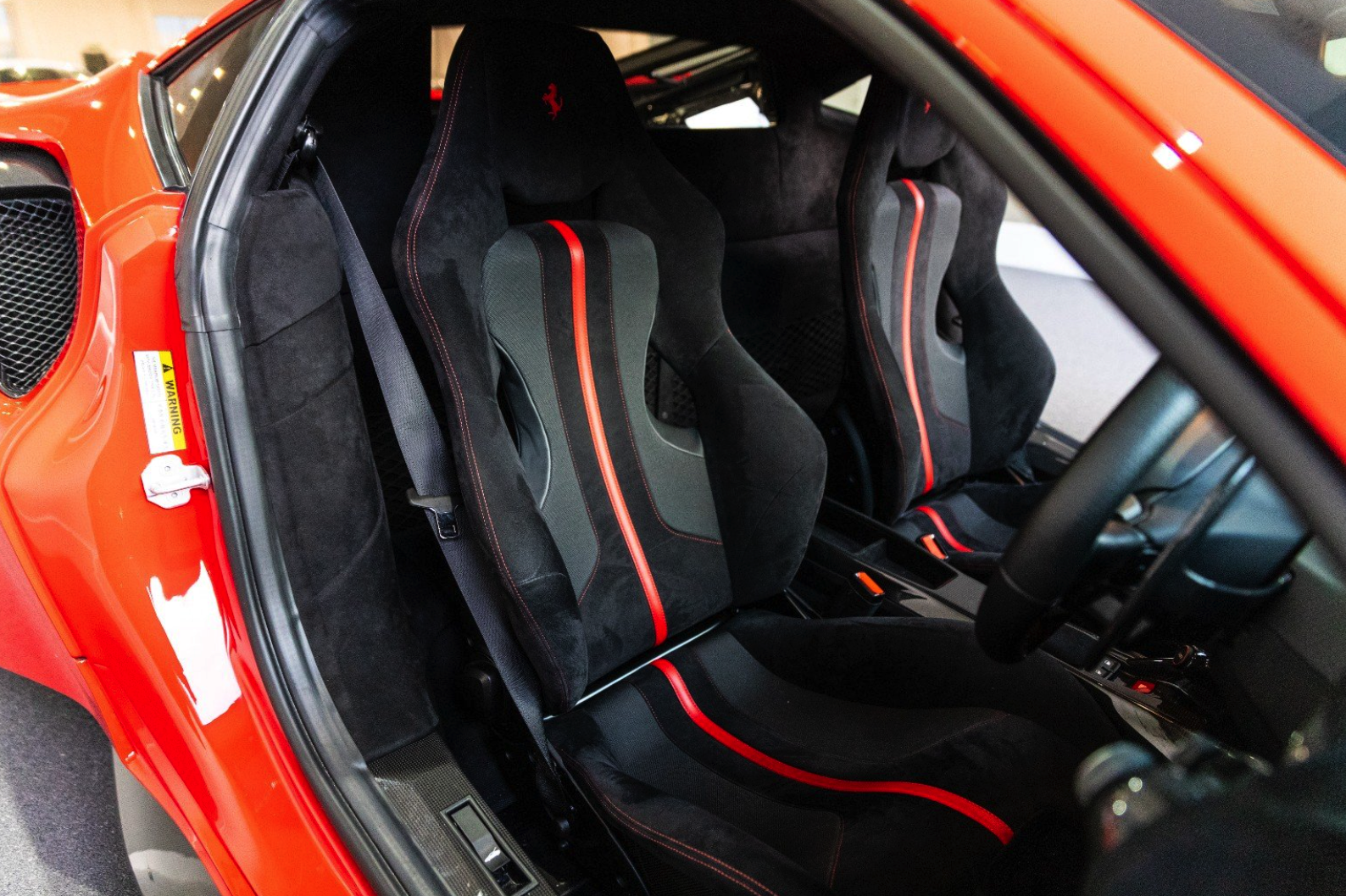 Carbon Fibre Under door Cover, Carbon Fibre Inner Sill Trim, Carbon Fibre Upper Centre Console Trim, 4 Point Harness, Titanium Exhaust Pipes ,Adaptive Frontlight System (AFS), Suspension Lifter, Hi Power HiFi System, Rear Parking Camera, Scuderia Ferrari Shields on Fenders, Embroidered Prancing Horse on Headrests, HELE - High Emotion Low Emission, Radio Navi System + Bluetooth, Mats with logo, Red Brake Callipers, Apple Car Play, 20in Forged Dark Painted Wheels and much more.
