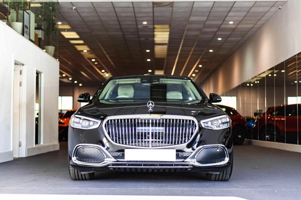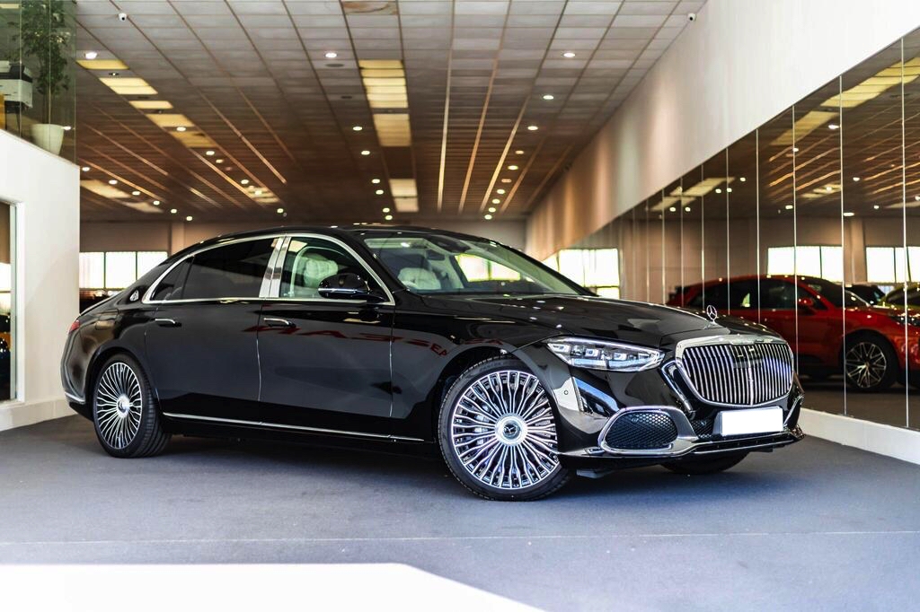 Exterior: Deep black paintwork with signature Maybach chrome accents