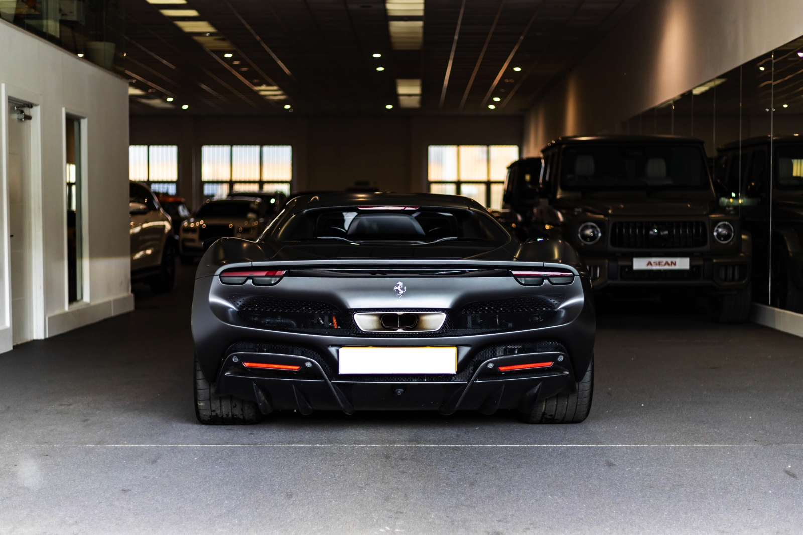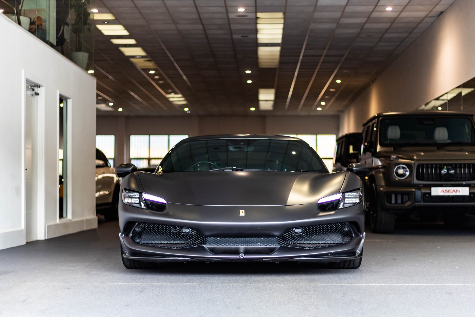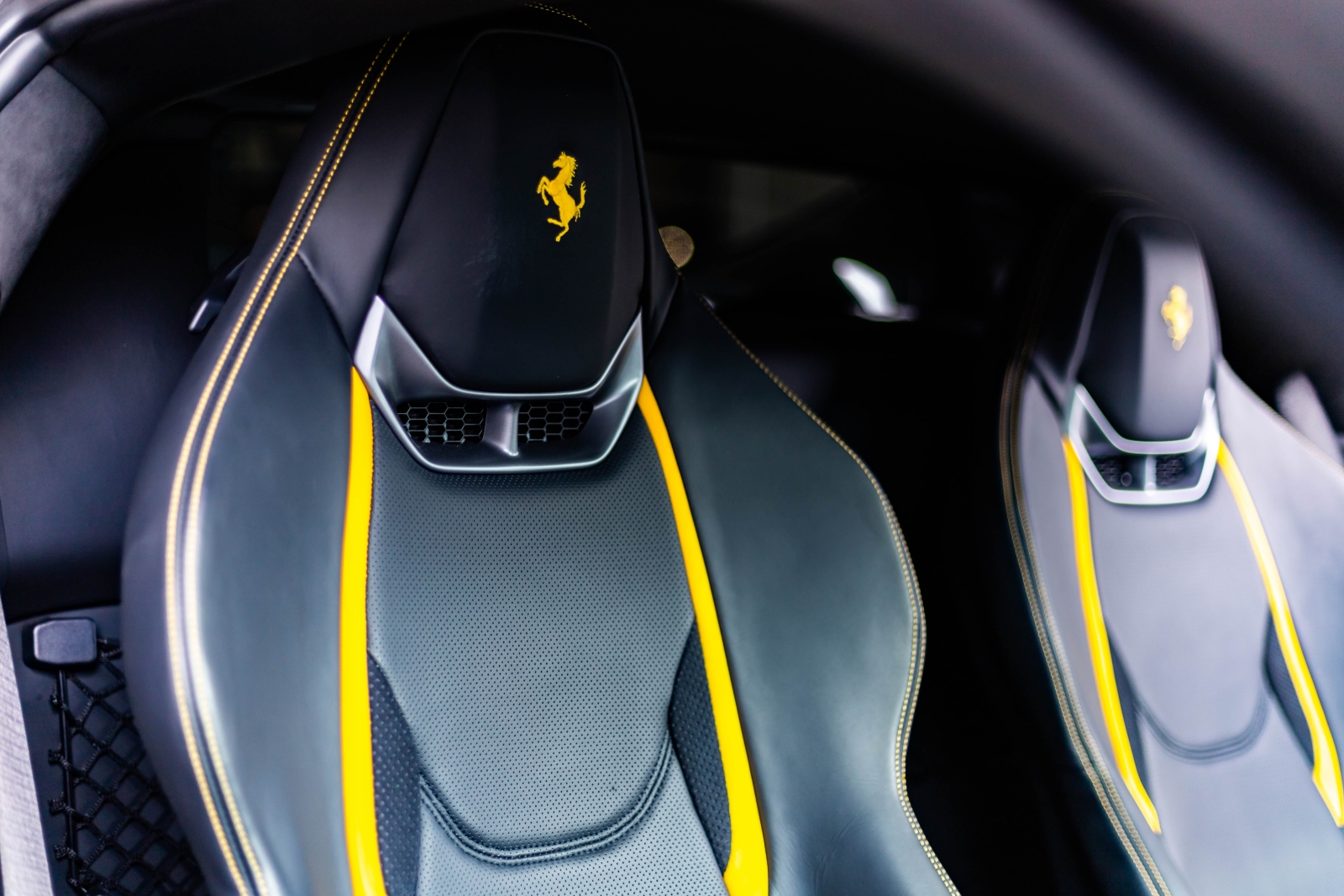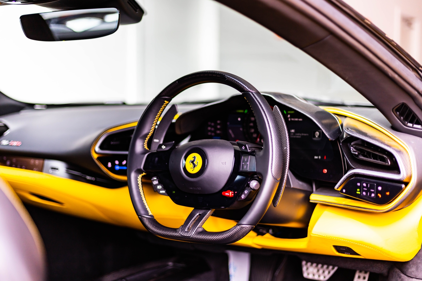 This is the Ferrari 296 GTB presented in metallic grey and complimented with a black and yellow leather interior. This is one not to be missed.
