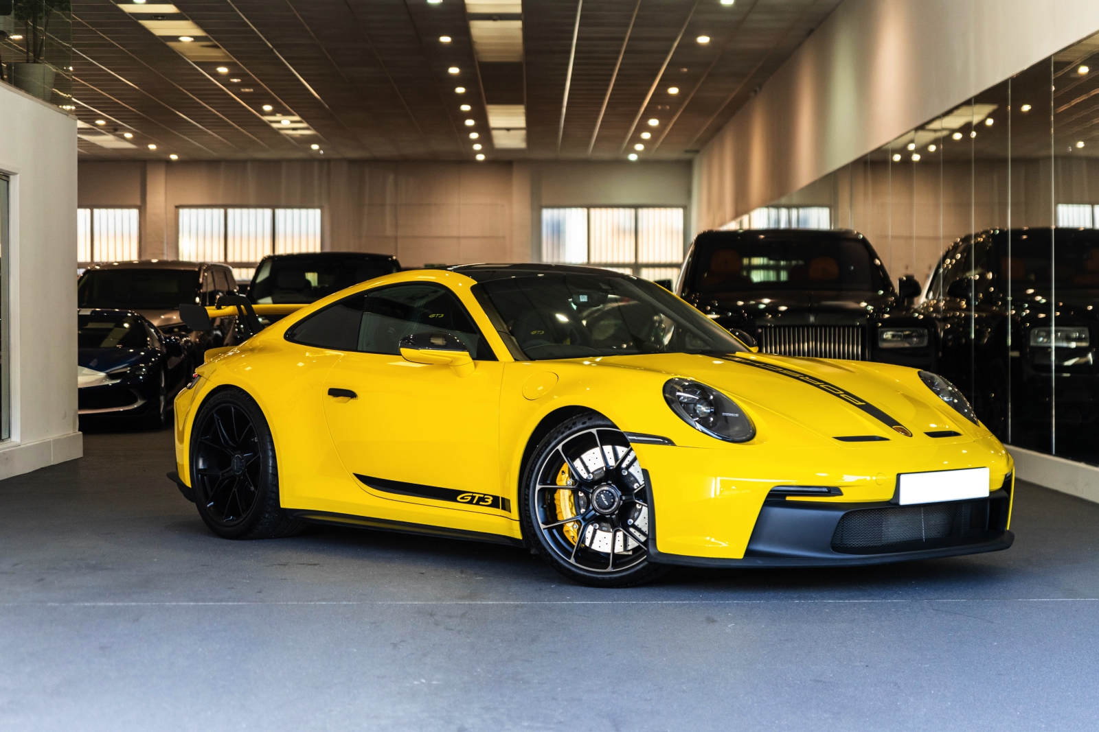Presented in Yellow with a black contrast interior this Porsche 911 GT3 has an amazing style to accompany its performance.